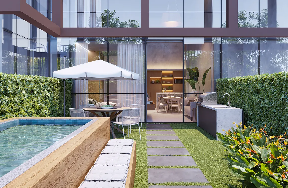 Ideal para quem deseja morar ou investir, o projeto conta com unidades compactas e inteligentes, como studios, double suites, townhouses, up gardens, coberturas dúplex e lojas.